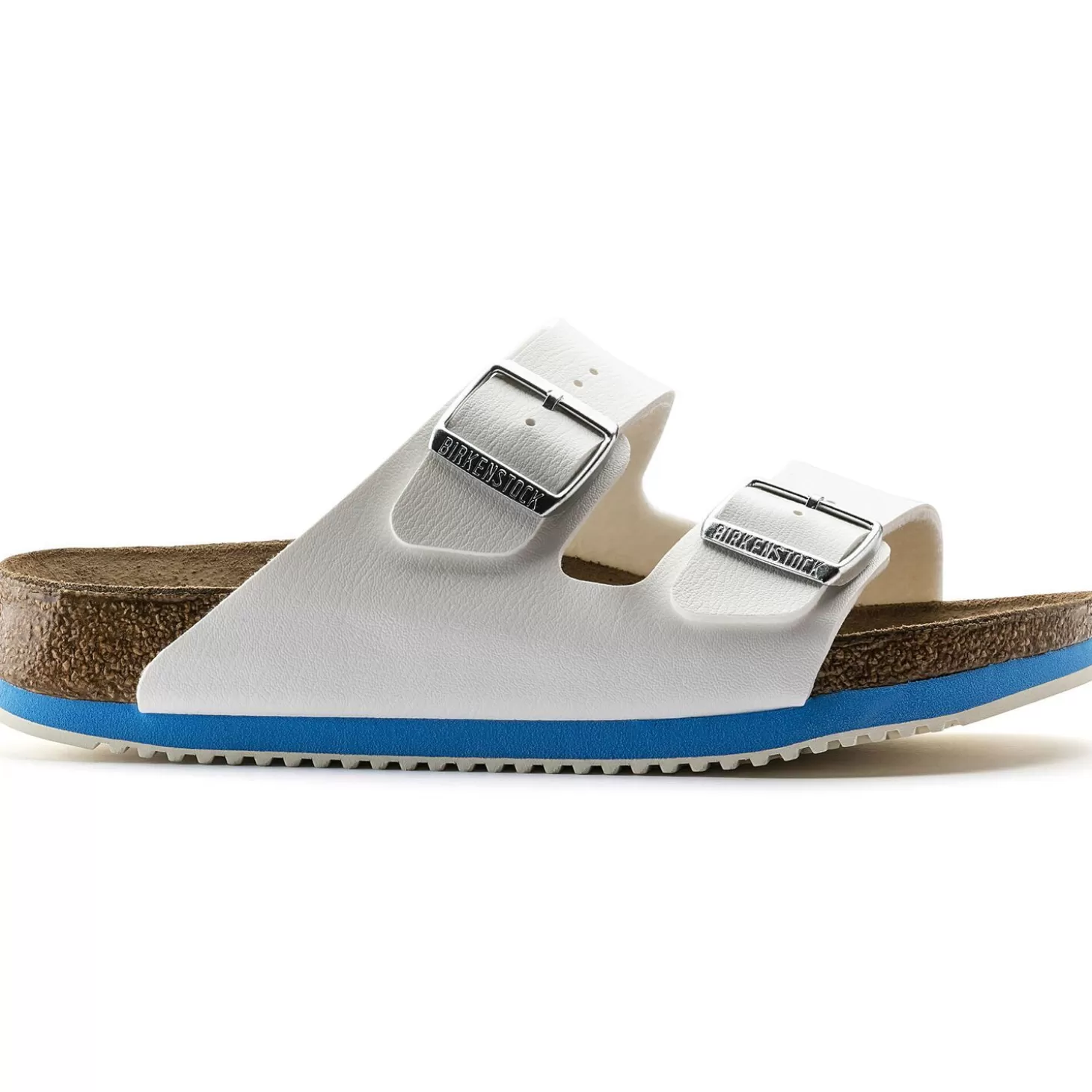 De Sandaal Met Twee Banden Arizona Sl Is Uitgerust Met Een Superloopzool. Deze Bestaat Uit Een Dempende Tussenzool Van Eva En Een Loopzool Van Rubber En Wordt Gekenmerkt Door Een Comfortabele Afrolbeweging. Bovendien Voorkomt De Zool Uitglijden Op Gladde Ondergronden En Is Hij Olie- En Vetbestendig. Dankzij De Verstelbare Banden Biedt De Sandaal Buitengewoon Goede Steun En Draagcomfort.