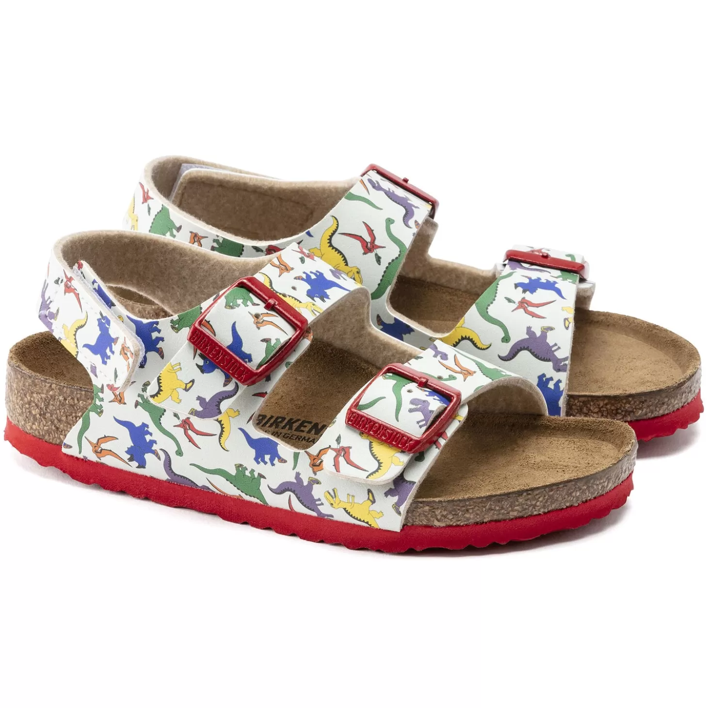Maximaal Houvast, Hoge Stabiliteit En Een Optimale Pasvorm! Het Birkenstock Model Milano Hl Blinkt Uit Door Functionaliteit. De Klittenbandsluiting Voorkomt Dankzij De Eenvoudige Handhaving Veel Stress Op De Vroege Ochtend. Bovendien Zorgt Hij Ervoor Dat De Sandaal Niet Uitslipt Tijdens Het Hollen En Dollen. Deze Variant Is Bij Kinderen Bijzonder Populair. Met De Kleurrijke Dino-Print Stappen De Kids Vrolijk De Dag Door. De Details In Een Bijpassende Kleur Maken Het Geraffineerde Design Van Deze Sandaal Helemaal Af. Het Bovenwerk Bestaat Uit Het Huidvriendelijke En Slijtvaste Synthetische Materiaal Birko-Flor®.