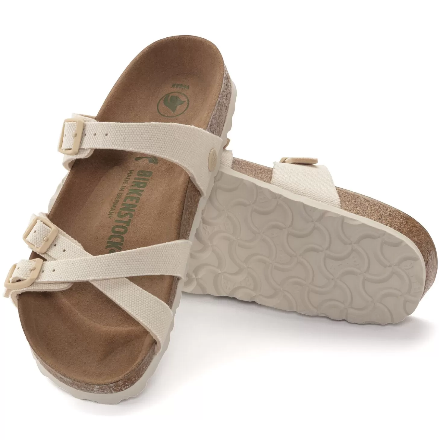 De Birkenstock Franca Is Een Sierlijke Sandaal Met Smalle, Gekruiste Bandjes. Deze Geslaagde Combinatie Van Design En Comfort Zorgt Ervoor Dat Modebewuste Dames Elegant En Comfortabel De Dag Doorkomen. Het Materiaal Van Deze Populaire Sandaal Hebben Wij Zodanig Aangepast Dat Deze Nu Ook In Een Veganistische Versie Verkrijgbaar Is. Deze Is Volledig Vrij Van Dierlijke Bestanddelen. Dit Is Bevestigd Door Onafhankelijke Laboratoria. De Gespen Met Hun Matte Textielstructuur In Een Bijpassende Kleur Zijn Net Als De Bijpassend Gekleurde Loopzool Echte Blikvangers. Het Bovenmateriaal Bestaat Uit Soepel Textiel.