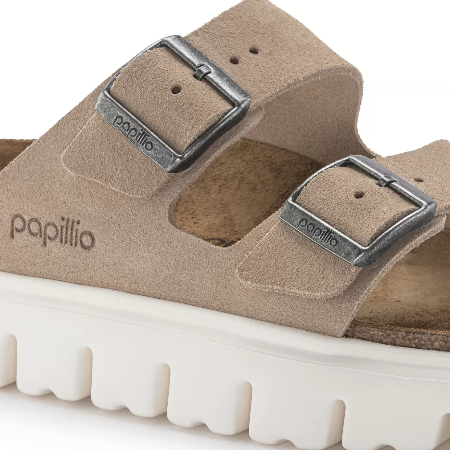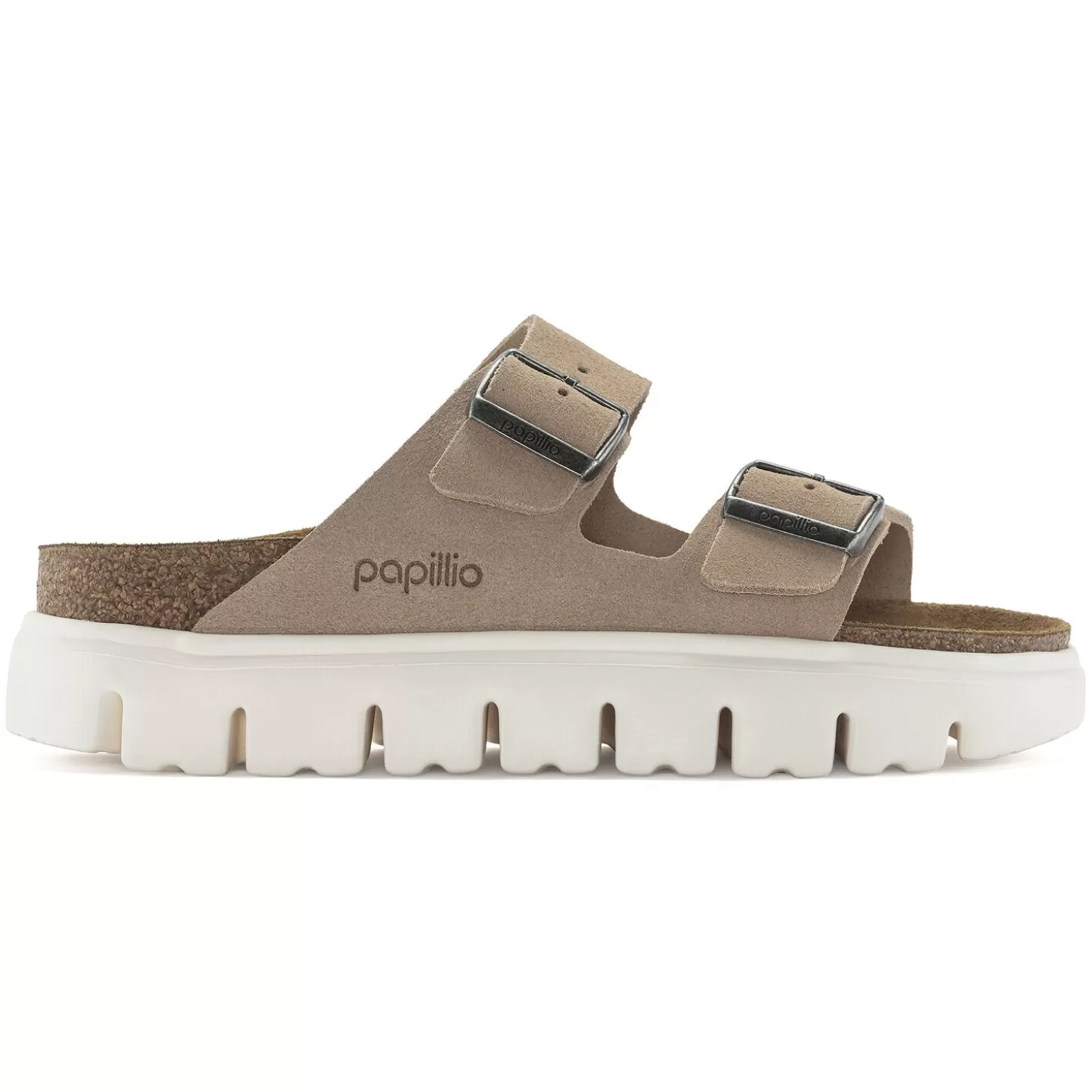 Het Model Arizona Is Een Echte Klassieker, Die Al Decennia Lang Populair Is Onder Mannen En Vrouwen. Papillio Heeft Deze Sandaal Met Twee Riemen Hier Voorzien Van Een Modieuze Plateauzool Met Extreem Diepe Profiellijnen. De Licht Afgeschuinde Voorkant Zorgt Voor Maximaal Loopcomfort. Het Bovenwerk Bestaat Uit Bijzonder Zacht Suede Dat De Voet Als Een Tweede Huid Omsluit.