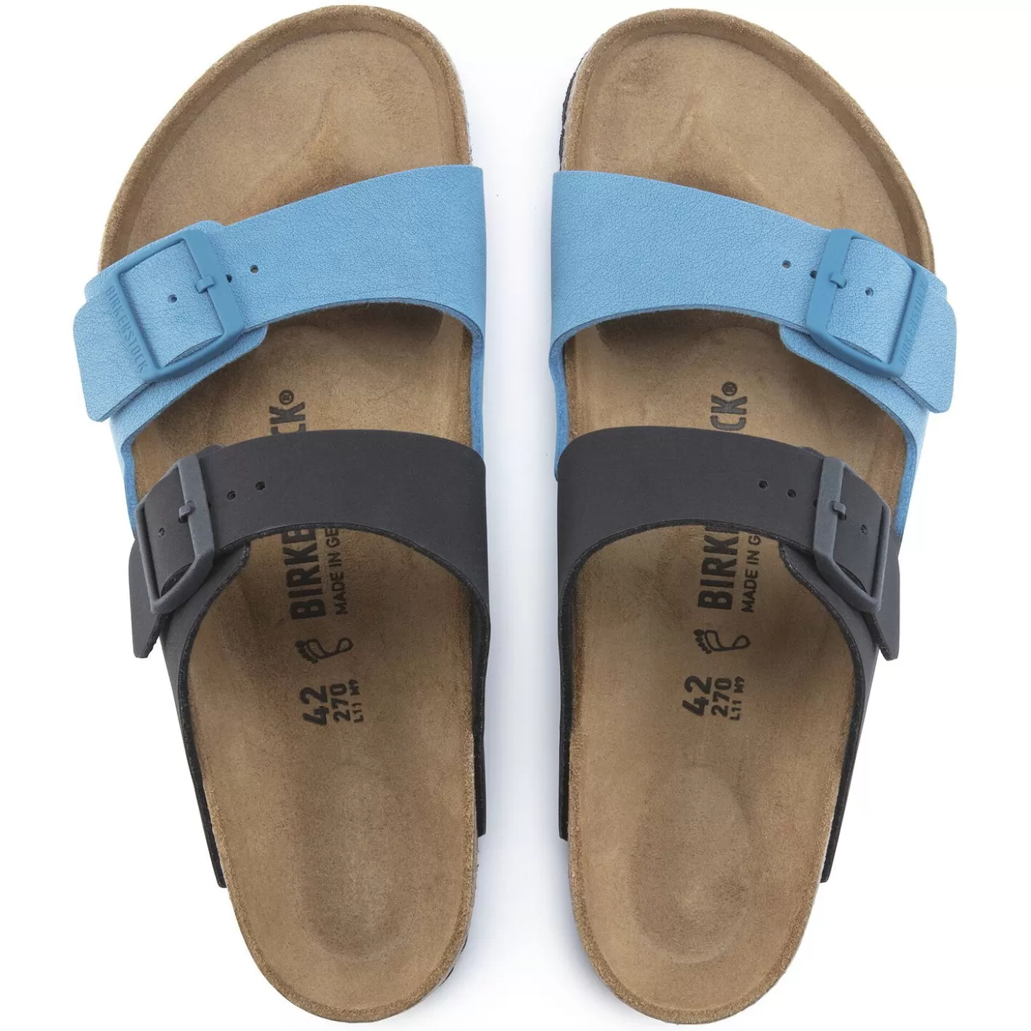Het Birkenstock Model Arizona Is Een Echte Klassieker, Die Dankzij Zijn Tijdloze Ontwerp Al Decennia Lang Populair Is Onder Mannen En Vrouwen. Deze Variant Speelt Met Contrasten In Color Blocking-Stijl. Het Bovenwerk Bestaat Uit Het Huidvriendelijke En Slijtvaste Synthetische Materiaal Birko-Flor® Met Een Luxe Nubucklook, Waardoor Het Qua Textuur En Kleur Nauwelijks Van Echt Leer Valt Te Onderscheiden. De Gespen Met Hun Matte Textielstructuur In Een Bijpassende Kleur Zijn Een Echte Eyecatcher.