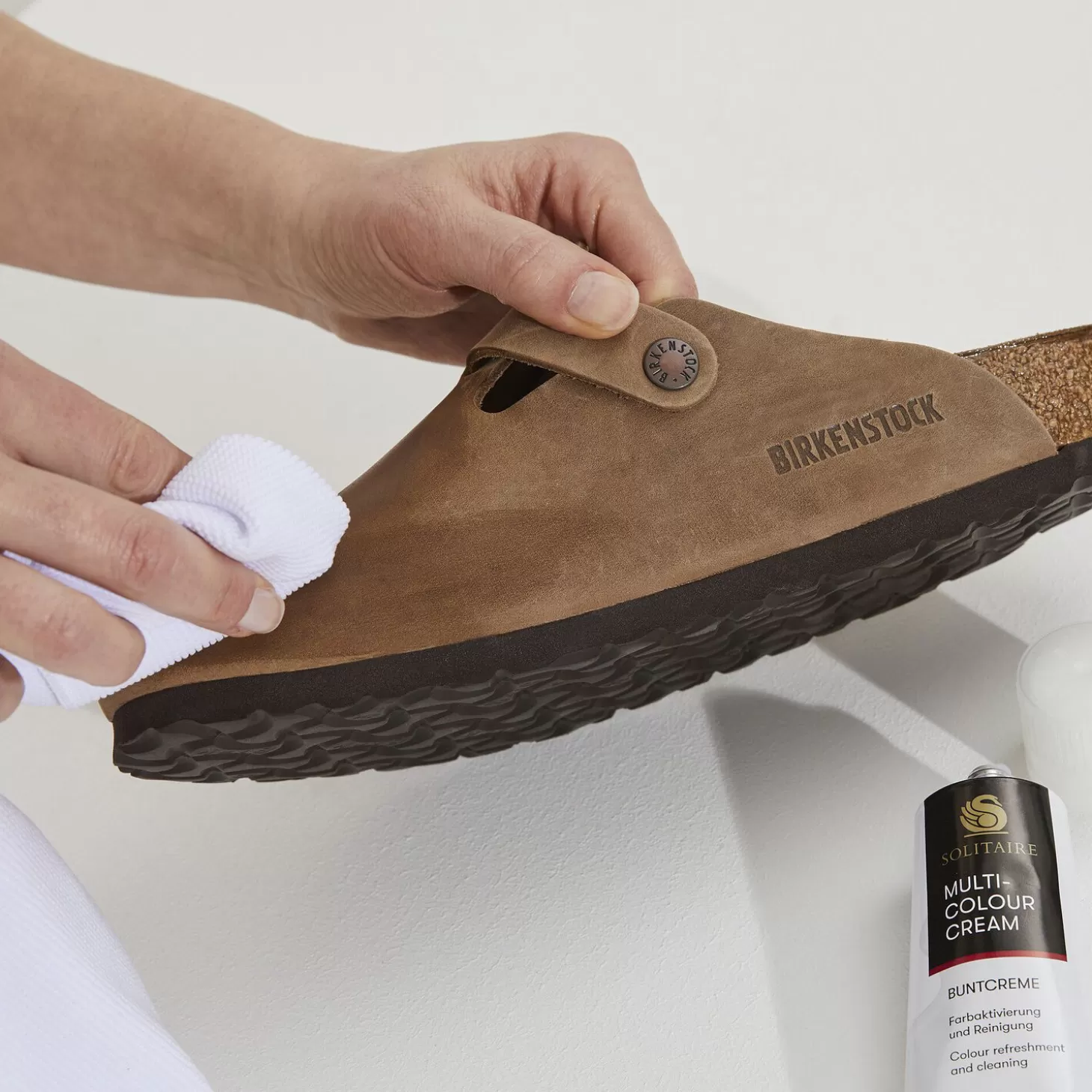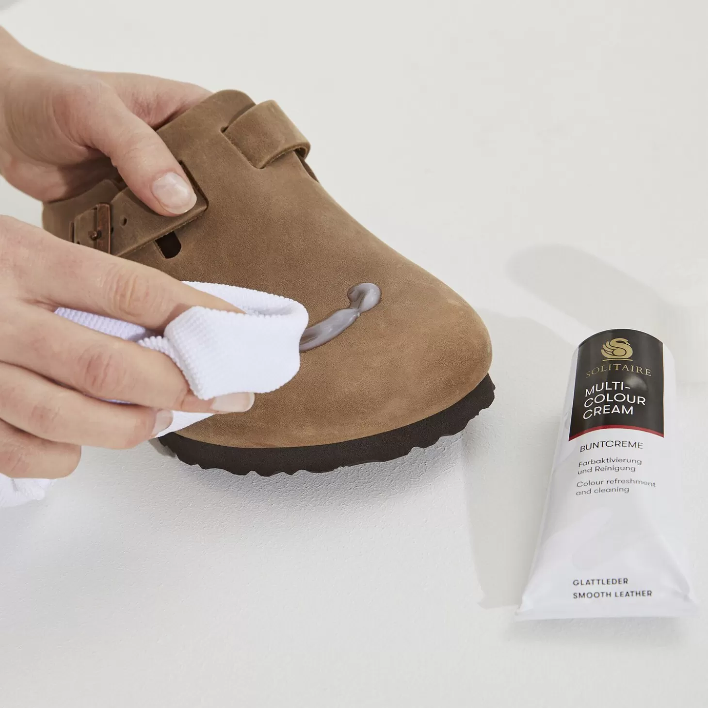 De Multi-Colour Cream Van Onze Partner Solitaire Is Uitermate Geschikt Voor Het Reinigen En Onderhoud Van Verschillende Gekleurde Leersoorten. De Schoencreme Geeft Gekleurd Leer Een Opfrisser En Is Ook Geschikt Voor Gevoelige Leersoorten Zoals Lakleer Of Een Combinatie Van Verschillende Leersoorten.